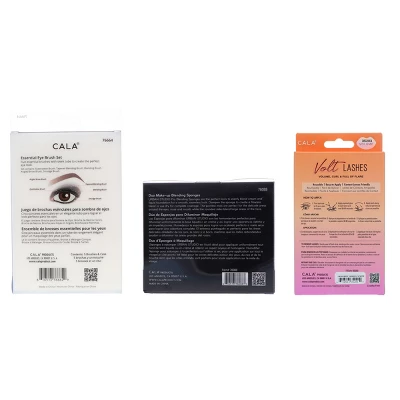 Do your makeup perfectly every time and make it easy to create a gorgeous smoky eye look with the CALA Eye Need It Brush Kit Lavender, Urban Studio Duo Blending Sponges Purple/Teal & Volt Lashes Volume Curl & Full 5 pk Combo Pack. This kit contains everything you need to simplify your makeup routine. The lavender brush kit contains a variety of brushes with different tips. Each one provides smooth, even coverage so you can achieve the look you want with minimal effort. The eyelashes that come with the kit give your eyelids a thicker, fuller appearance and leave you with the beautiful lashes that you have always dreamed of.
