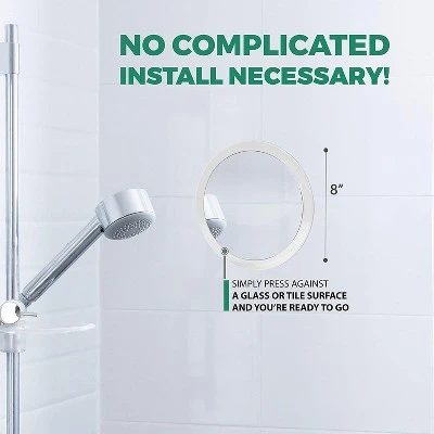 - No complicated install necessary! Press against a glass or tile surface and you’re ready to go.