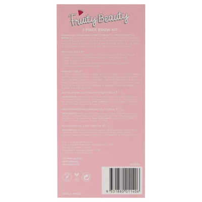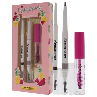 MCoBeauty Fruity Beauty Brow 3 Pc Kit contains everything you need to transform your brows like a pro. Featuring three must have MCoBeauty brow products: a full size Precision Brow, a full size Instant Brows and Clear Brow Gel. Precision Brow in Medium/Dark to shape and define your brows, and, Clear Brow Gel which can be used alone or to set you brow products in place for all day wear. Use these perfectly paired essentials to shape, define and set your brows. Comfortably removes and shapes unwanted brow hair and facial hair resulting in a smooth finish.