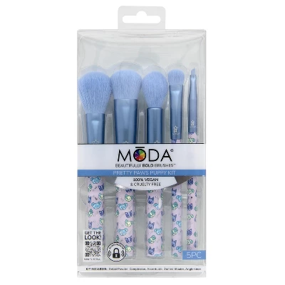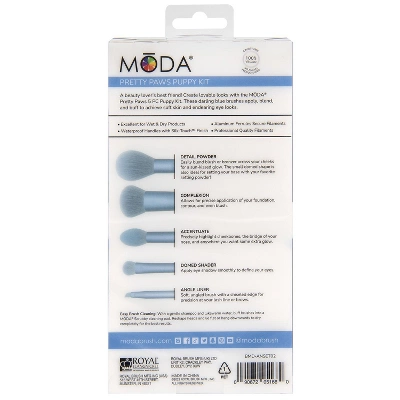 A beauty lover’s best friend! Create lovable looks with the MODA Brush Pretty Paws Puppy 5pc Makeup Brush Kit. These darling blue brushes apply, blend, and buff to achieve soft skin and endearing eye looks. This Brush Kit includes – Detail Powder, Complexion, Accentuate, Domed Shader, and Angle Liner Brushes.