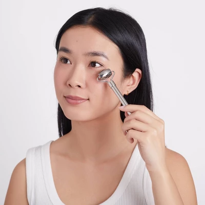 Improve skin tone and elasticity with the Plum Beauty Stainless Steel Facial Roller. Made of high-quality stainless steel, known for its natural antibacterial and hypoallergenic properties. To use, apply moisturizer, serum or oil to skin. Using light pressure, roll from the center of the face outward until the product is absorbed. Also try with a sheet mask to work the mask serum deeper into the skin. Store roller in the refridgerator or freezer for a more cooling, comforting experience.