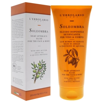 Formulated with a unique blend of carefully selected ingredients, the Soleombra Silky After-Sun Fluid delivers a lightweight and non-greasy texture, allowing for effortless application and quick absorption. Enriched with soothing botanical extracts, this fluid works harmoniously to calm and replenish your skin, alleviating any discomfort caused by sunburn or prolonged sun exposure. Its deeply hydrating properties help restore moisture levels, leaving your skin feeling supple, soft, and revitalized.