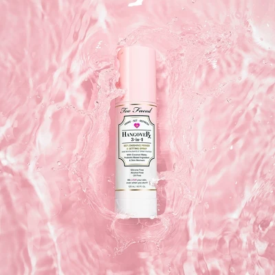 Too Faced Hangover 3-In-1 Replenishing Primer & Setting Spray is a weightless 3-in-1 coconut water-infused mist that primes, sets and refreshes makeup while it helps keep skin hydrated.