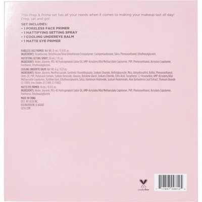 Ulta Beauty Collection’s Prep and Prime Set has all your needs when it comes to making your makeup last all day! Prep eyes, under eyes and face. Set with makeup setting spray and go!